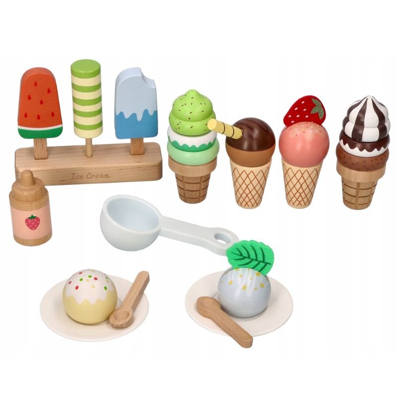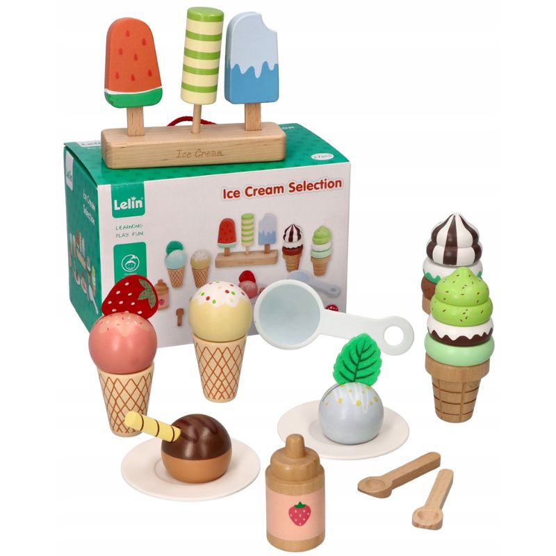 הילדים יוכלו ליצור קינוחי גלידה כיד הדמיון הטובה עליהם – בגביעים, בקעריות או כארטיק על מקל. זהו משחק נהדר לפיתוח היצירתיות, מיומנויות חברתיות ומוטוריקה עדינה, בזמן שהם משחקים בחנות, בבית קפה או מארחים חברים.