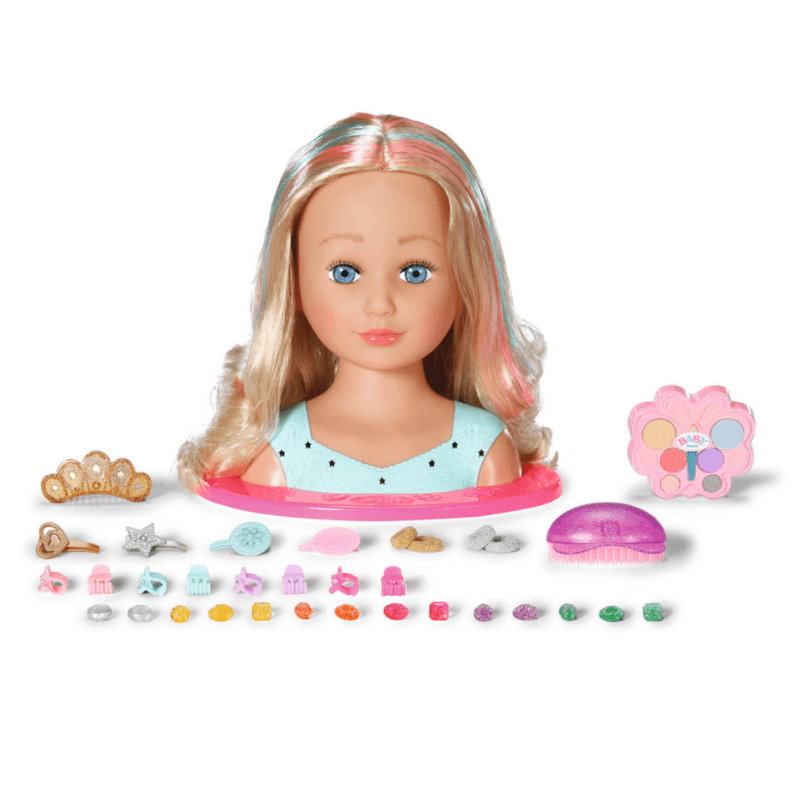 הגיע הזמן להוציא את מעצבי השיער והמאפרים שבכם! ראש הבובה המהמם של BABY born הוא קנבס מושלם ליצירתיות אינסופית. עם שיער בלונדיני משגע וגוונים צבעוניים, כל תסרוקת הופכת ליצירת אומנות.