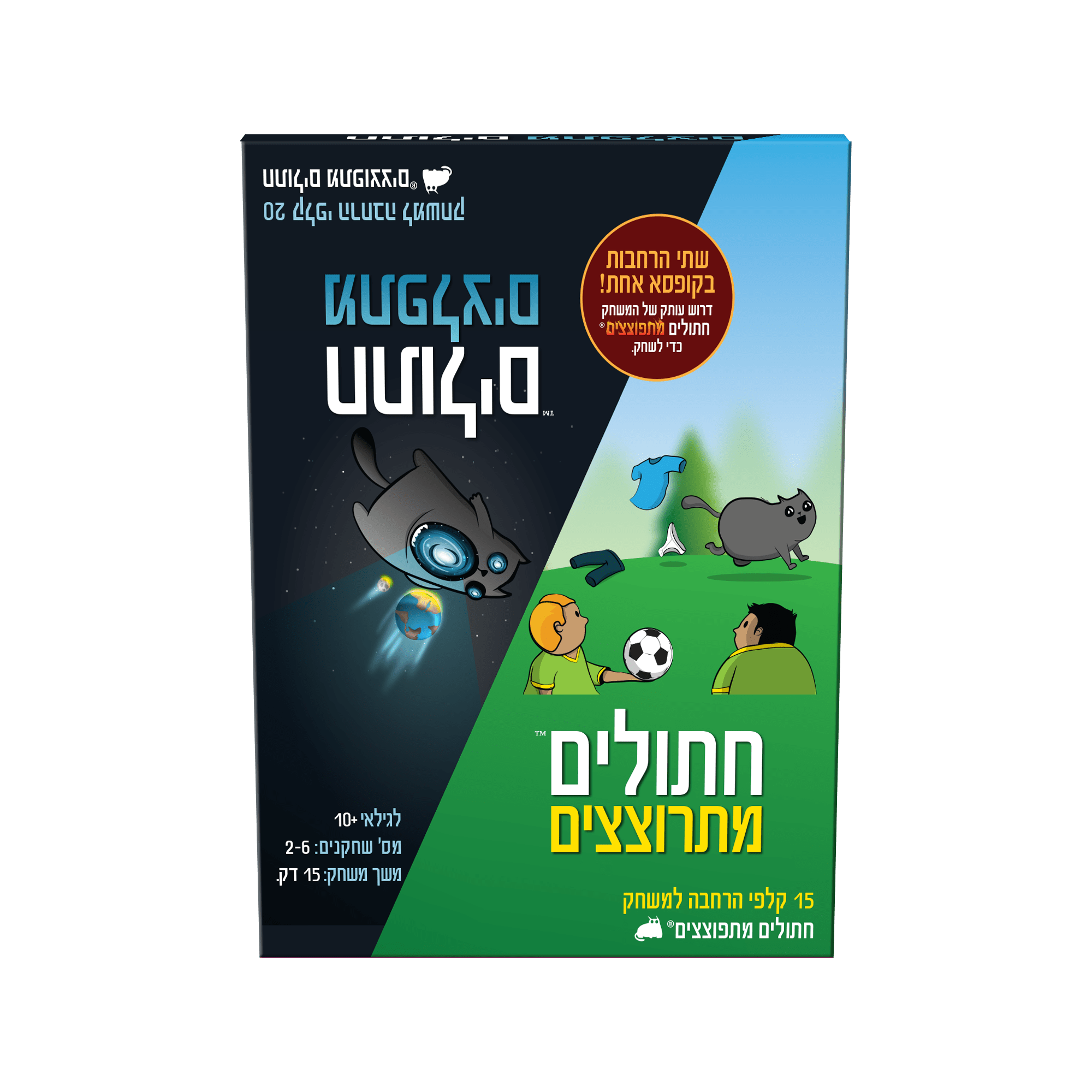התמכרתם למשחק הקלפים המותח ועטור הפרסים “חתולים מתפוצצים” ואתם לא מוכנים להחליף אותו בשום משחק אחר? לפניכם שתי הרחבות המגיעות במארז אחד, ההופכות את משחק הבסיס למורכב ולמשעשע עוד יותר, ומעניקות לכם אפשרויות מקוריות להתחמקות משליפת קלף ההתפוצצות הבלתי נמנע. מוכנים למשחק מהיר, קליל ומצחיק עוד יותר? אולי כדאי שתשחקו בכל הרחבה בנפרד לפני שאתם מאחדים את שתיהן, כדי שלא תתפוצצו מהר מדי. בכל מקרה, תהיו חייבים את משחק הבסיס כדי לשחק.