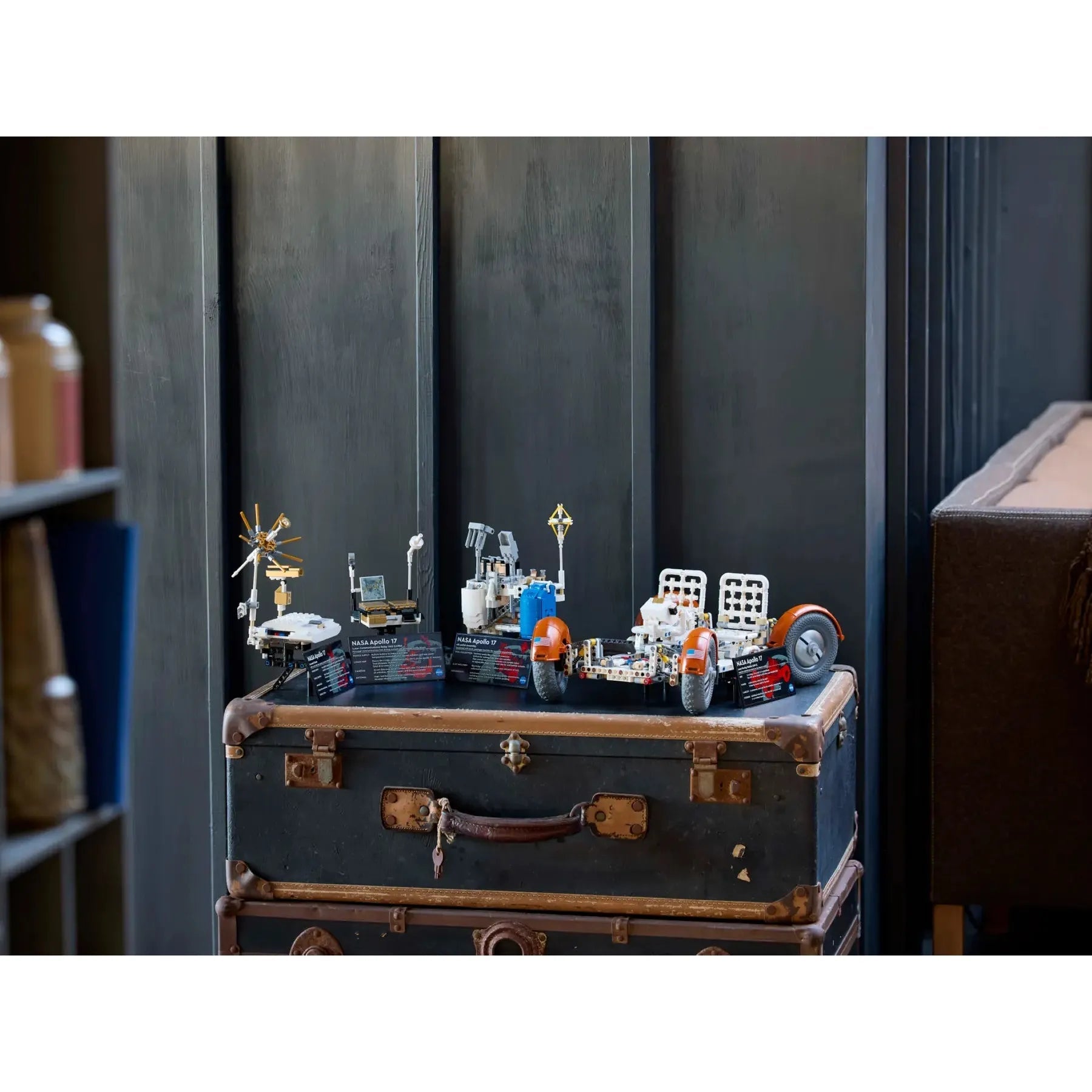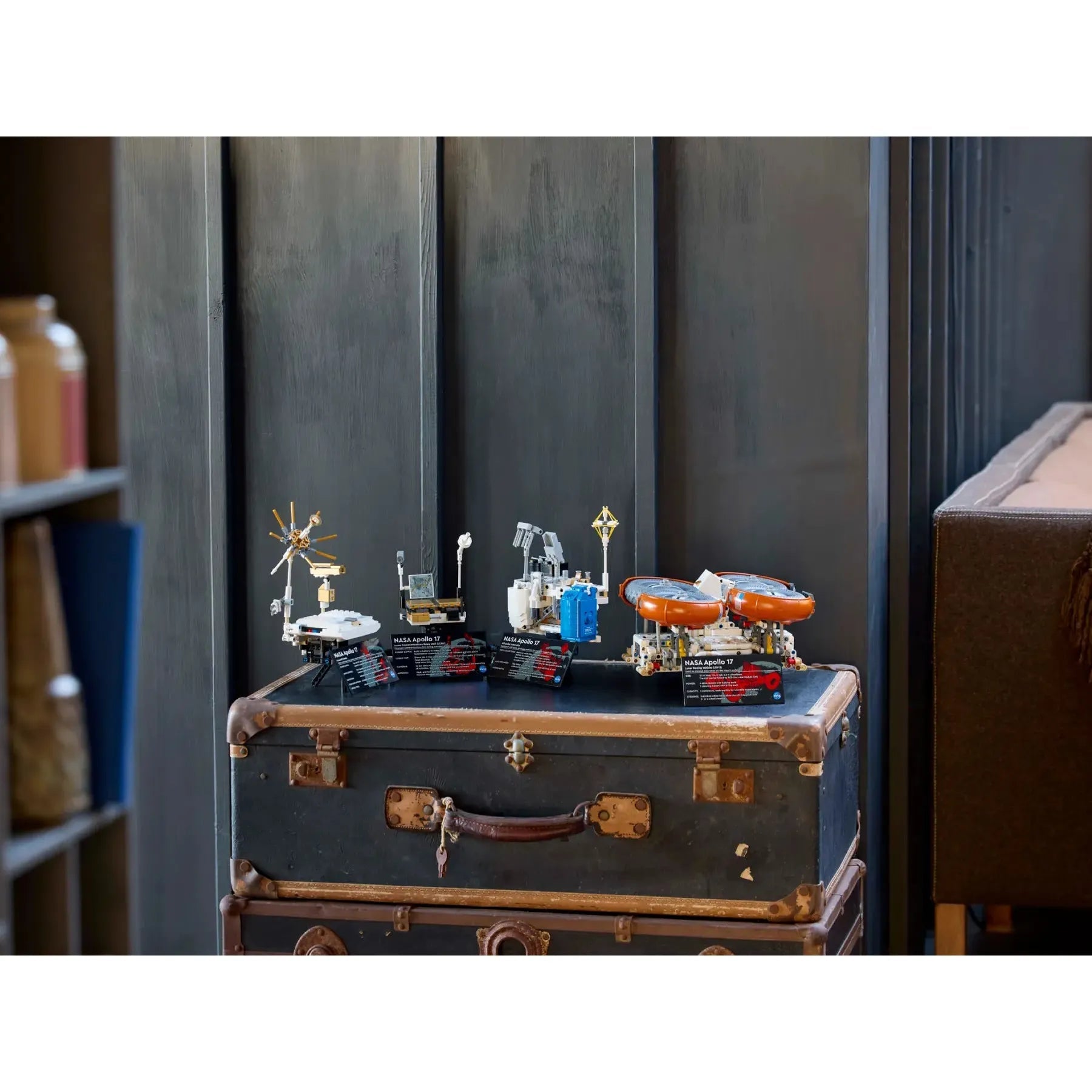 הערכה כוללת גרסת דגם תצוגה של מודול רובר הירח שנישא על סיפון אפולו 17, בתוספת 3 סטים של ציוד שניתן לחברם. פתחו את הרובר של נאס"א, הוסיפו את הציוד ובדקו את מערכת ההיגוי והמתלים תוך כדי שאתם מדמיינים את עצמכם לוקחים חלק באופן מלא במשימת ההליכה על הירח ואוספים דגימות ירח. בדקו את מארז הסוללות של הדגם, הכולל גופי חימום וקירור, פלוס מצלמת טלוויזיה עם מערך אנטנות. גלו את יחידת התקשורת, נסו כלי עבודה הכוללים את חפירה ומקדחה ומצאו אלמנטים של סלע ירח של LEGO. הערכה כוללת גם את הציוד לביצוע הניסוי למדידת כוח המשיכה על הירח שנערך על ידי אפולו 17, בתוספת אלמנט לכבוד דגימת ה-Big Muley המפורסמת, דגימת הסלע הגדולה ביותר שהובאה לכדור הארץ במסגרת תוכנית אפולו.