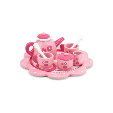 הסט מכיל כל מה שתצטרכו בשביל לארח לשעת תה! הסט עשוי מעץ וצבוע בורוד בהיר מכיל קומקום, 2 ספלים, 2 כפיות, 2 צלוחיות, מגש, כלי לסוכר וכלי לחלב.