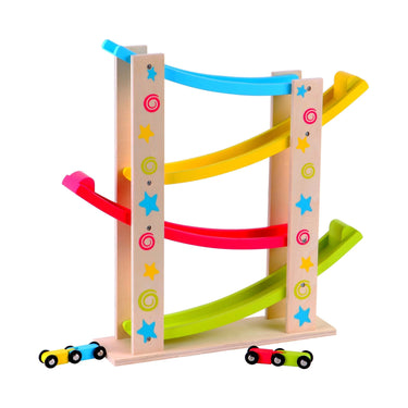 מסלול מכוניות מעץ, מפתח מיומנויות כמו דמיון, תיאום עין יד וחשיבה. גילאי 12 חודשים ומעלה.